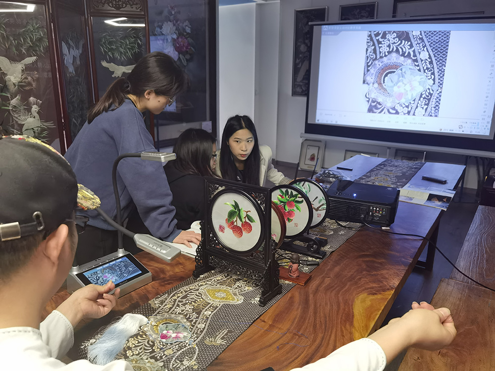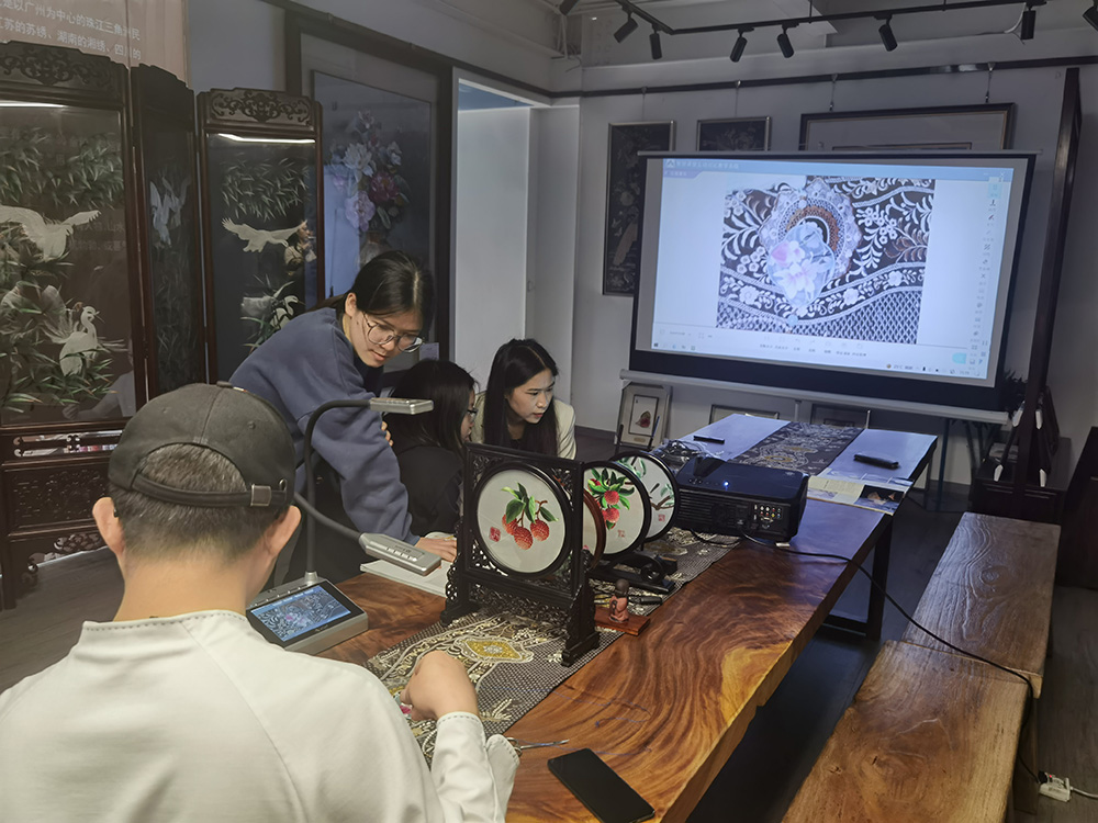 或者是展示不同角度的廣繡教學過程,學生在同一時間能夠觀看到不同角度的刺繡,能夠更深入了解廣繡。
